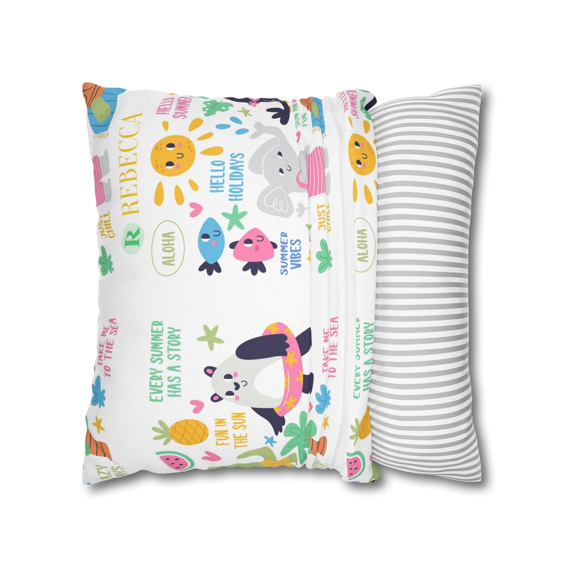 Cute Summer Animal Pattern Pillowcase — Personalized 'Rebecca' Tropical Throw Pillow Cover
